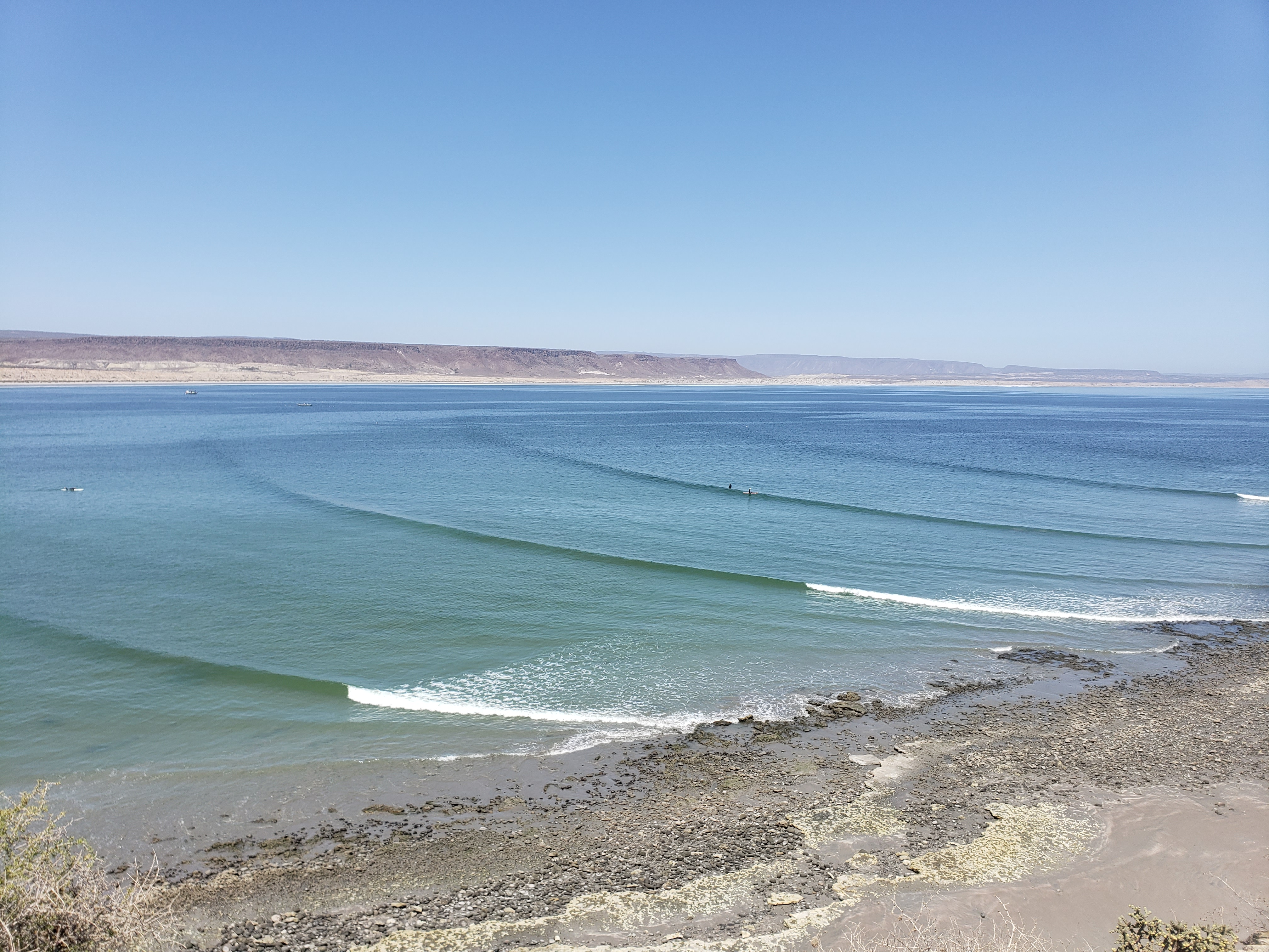 From Loreto we hired our car and started the 3.5 hour drive across the peninsula to the town of San Juanico, to the north of which Scorpion Bay is situated. The drive moves from the hot Sea of Cortez side rising over the mountains to the desert plateau and eventually across to San Juanico and the Pacific Ocean by way of dusty deserts and endless cowboy movie cacti. The landscape is big and empty. Big skies, sand, glimpses of the Pacific across the sand and no people. It feels like the end of the earth. Across the plains we came to the junction town of Ciudad Insurgentes and headed north, parallel to the Pacific, glimpse of which we would see on our left in the distance through the hazy, dusty sun. Brief sightings of the deep blue tantalizing us into the promise of what the Ocean might have in store for us over the next few days.