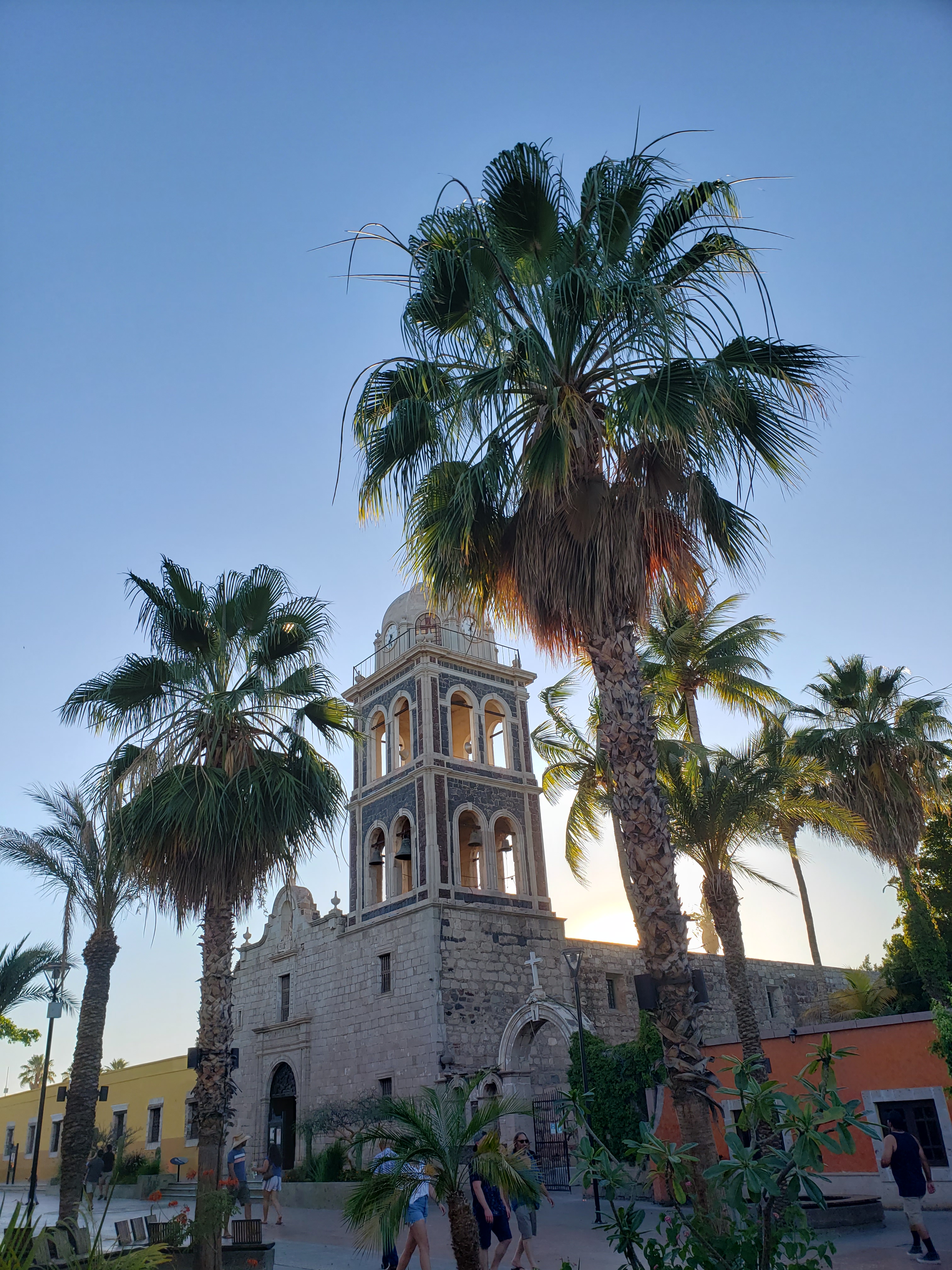 On the last day we left after breakfast to spend the day and our last night in Loreto. After descending from the mountains to the Sea of Cortez you skirt magical coves and beaches. We stopped off for a swim and it felt like the Greek Islands – crystal clear water, hot and dusty, endless coves, white sands and a laidback and sleepy vibe. In fact the Sea of Cortez is famed for its world class snorkeling and diving sites so you could do a great holiday splitting your time between the Pacific side and here. It’s also famous for whale watching as humpback and grey whales migrate from California waters around the bottom of Baja and up the coast to give birth in the calm and warmer waters of the Sea of Cortez. Loreto itself was a lovely sleepy port town. I felt like I had been taken back to 1970s Spain or Portugal. Everything seemed a little – in a very good way – old fashioned. There’s a romantic malecon you can stroll alongside the pond-like sea. There’s a Main Street with restaurants and bars and a characterful Spanish colonial church.
